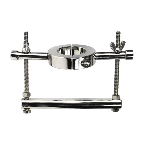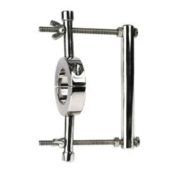 Dans le sens de la largeur (transversalement) : les testicules sont tirĂ©es par l’Ă©tireur de couilles et l’Ă©tau est mis en place (en le vissant). La stimulation sexuelle augmente avec la pression exercĂ©e.Â